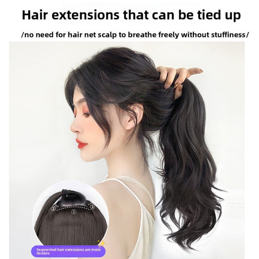 European and American wig one-piece hair quantity multiple U-shaped hair extension female fishing line wig invisible natural long curly hair